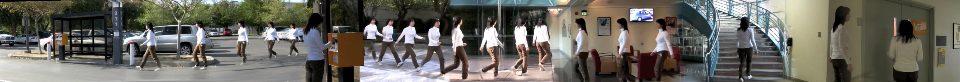 depicts the stages of a motion. In addition, previous approaches focus on the generation of static summaries and can afford expensive image composition techniques. A dynamic narrative, on the other hand, must be played and skimmed in real-time, which imposes certain cost limitations in the video processing. In this paper, we define a novel process to compose foreground and background regions of video frames in a single interactive image using a series of spatio-temporal masks. These masks are created to improve the output of automatic video processing techniques such as image stitching and foreground segmentation. Unlike hand-drawn narratives, often limited to static representations, the proposed system allows users to explore the narrative dynamically and produce different representations of motion. We have built an authoring system that incorporates these methods and demonstrated successful results on a number of video clips. The authoring system can be used to create interactive posters of video clips, browse video in a compact manner or highlight a motion sequence in a movie.